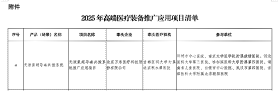 家電消費網12月15日訊 近日,由美的醫療旗下萬東醫療與北京積水潭醫院共同牽頭的“無液氦超導磁共振系統”項目,入選國家工業和信息化部、國家衛健委、國家藥監局聯合組織的高端醫療裝備推廣應用目錄,標志著我國在高端醫療裝備自主創新方面邁出關鍵一步。