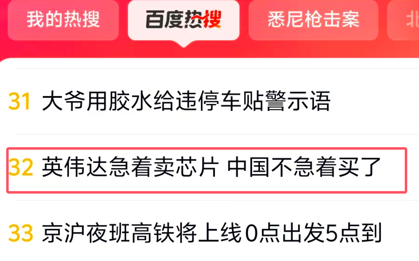 “英偉達急著賣芯片 中國不急著買了”沖上百度熱搜
