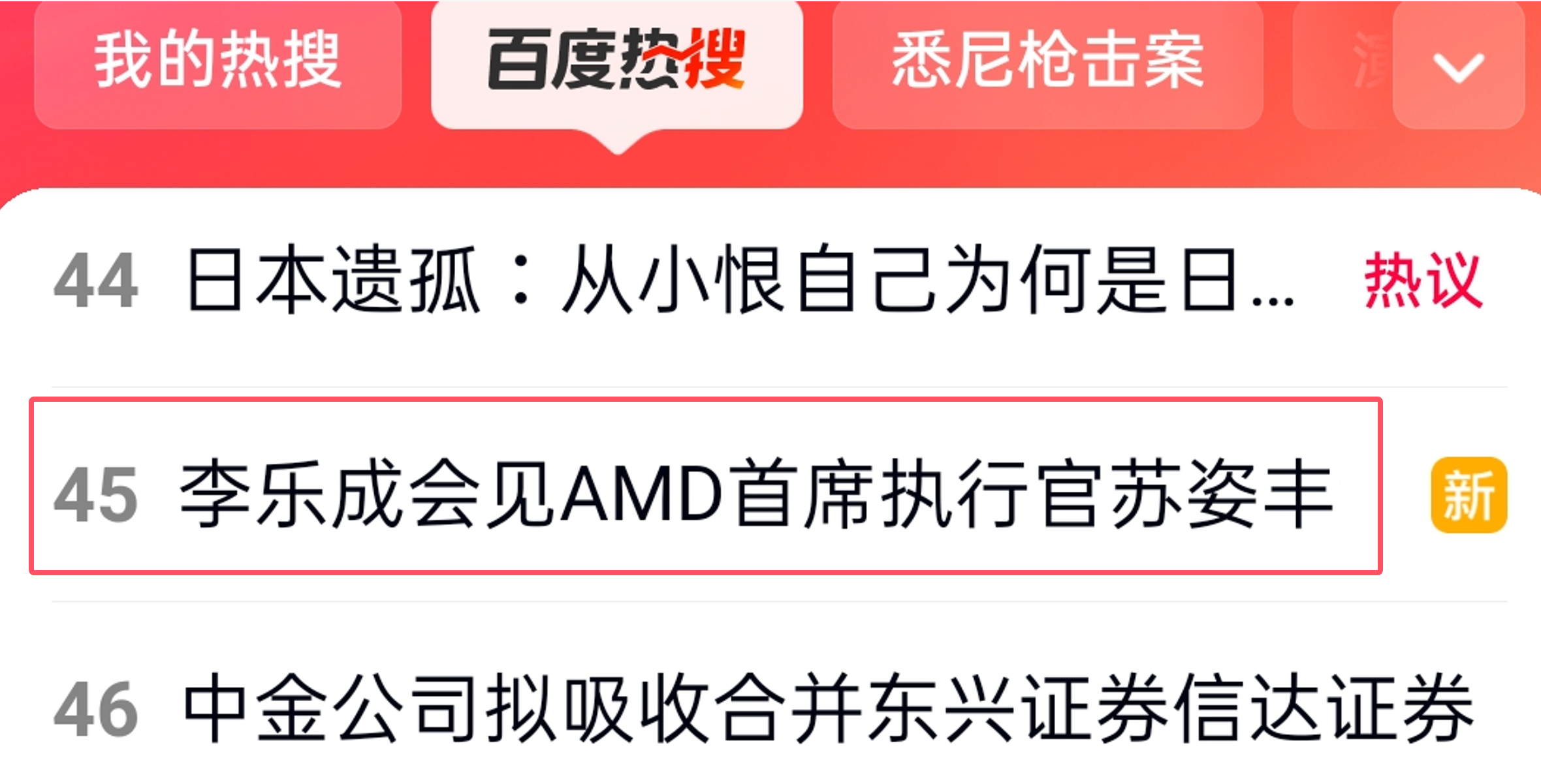 “李樂成會見AMD首席執行官蘇姿豐”沖上百度熱搜