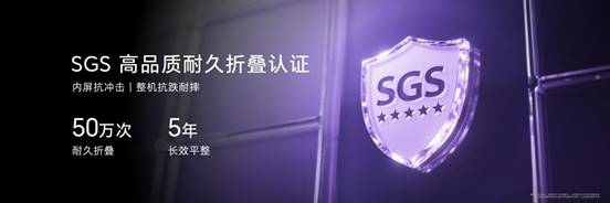 豎折從不是折疊形態與直板體驗的二選一,而是兩者的無縫融合,榮耀Magic V Flip2以硬核實力詮釋豎折旗艦的可靠體驗。榮耀Magic V Flip2在內屏配備了50μm超堅韌UTG玻璃,通過SGS高品質耐久折疊認證,具備內屏抗沖擊,整機抗跌耐摔等特點,可以實現50萬次耐久折疊,5年長效平整。