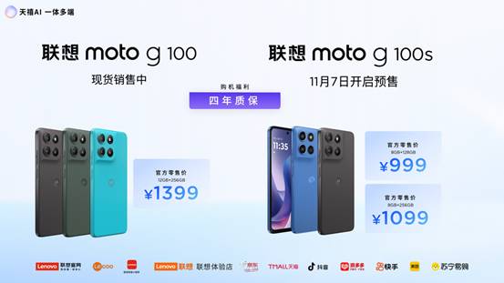 聯想moto g100 AI手機已經開售,售價1399元起;聯想moto g100s AI手機將于11月7日開啟預售,售價999元起。喜歡LCD的朋友,一定不要錯過。