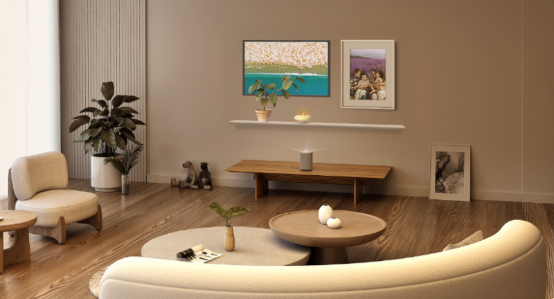 在場(chǎng)景氛圍營造上,三星Premiere 5突破了“播放工具”的單一屬性,其環(huán)境屏模式契合了當(dāng)下用戶對(duì)個(gè)性化空間打造的追求。用戶可隨心選擇投射自帶圖庫或手機(jī)相冊(cè)內(nèi)容,還可以配合音樂打造家中極具氛圍感的音樂墻,讓投影儀變身空間氛圍的核心營造者。從節(jié)日派對(duì)的熱鬧背景,到深夜閱讀時(shí)的柔和光影,只需一鍵切換,就能定制專屬空間風(fēng)格,為生活增添恰到好處的美感與儀式感。
