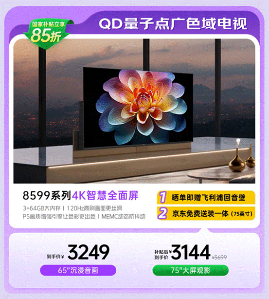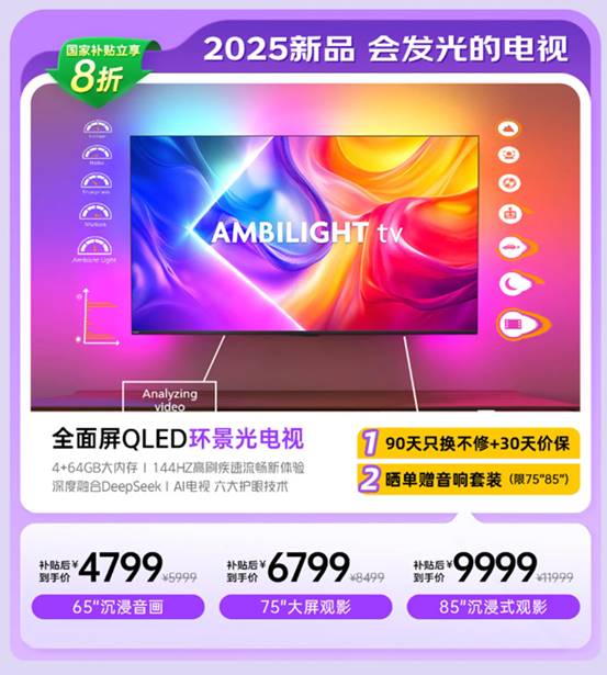 飛利浦電視雙11提前搶!至高20%國家補貼+多重好禮相贈
