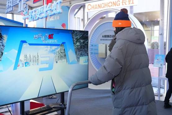 在賽事現(xiàn)場(chǎng),長(zhǎng)虹打造了沉浸式觀賽快閃店,攜全面滿足《百吋電視選購(gòu)白皮書》8大標(biāo)準(zhǔn)的長(zhǎng)虹百吋新品陣列包括100Q10Air、100U7H Mini及85吋Q10T Ultra等AI家電精彩亮相。長(zhǎng)虹在現(xiàn)場(chǎng)設(shè)置了趣味打卡互動(dòng)游戲,吸引眾多冰雪愛好者參與。在完成任務(wù)、獲取精美禮品的同時(shí),他們也深度體驗(yàn)了長(zhǎng)虹電視以卓越畫質(zhì)與沉浸音效還原賽場(chǎng)的震撼,仿佛身臨其境。