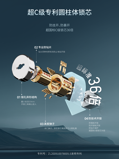 在鎖芯方面,王力安防的超C級圓柱體專利鎖芯構筑了行業難以逾越的防盜系統,防技開能力遠超國家C級標準的36倍。其通過304不銹鋼全包裹結構抵御鉗制破壞,同時鎖芯內部擁有閉門彈子、異形彈子和真假彈子等多重防護,異常觸發即二次鎖死。此外,通過嵌入防鉆片、防鉆銷可同步抵御電鉆攻擊與扭斷暴力開啟。自2003年 “挑戰開鎖王”活動以來,該鎖芯22年來從未被技術開啟,甚至不少開鎖公司明確標注“開鎖,王力門鎖除外”,體現出行業對其安全性的公開認可。