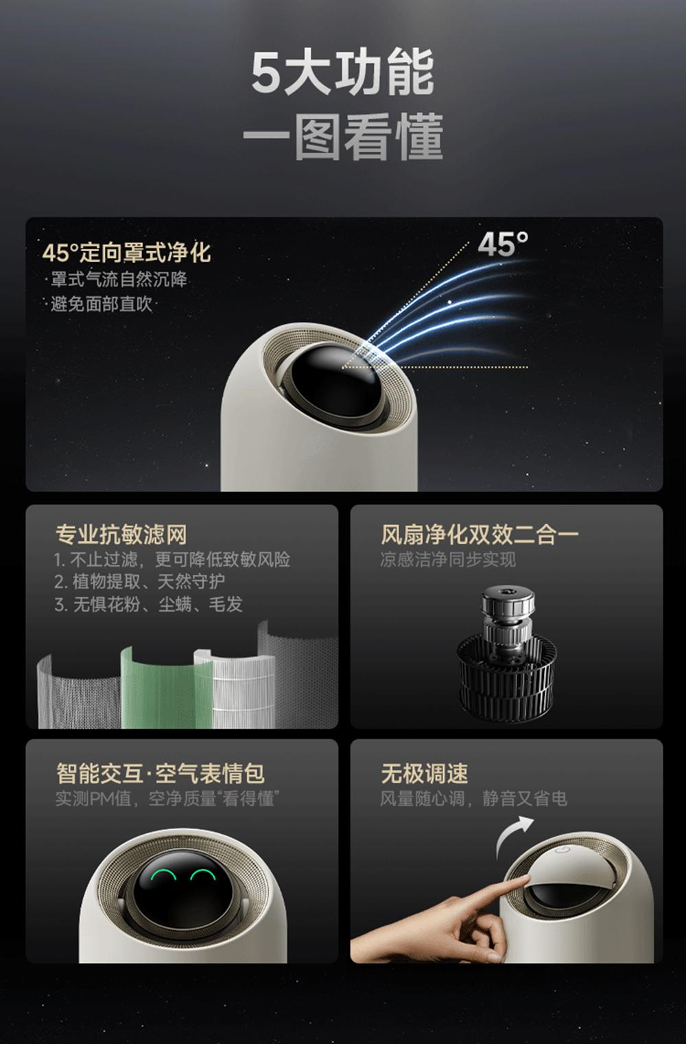 • 45°黃金角度定向凈化,呼吸健康“一步到位”