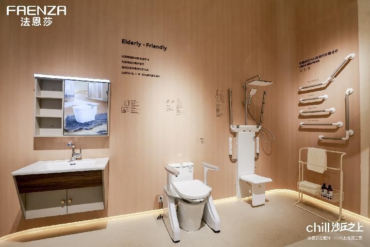 峰會現場,法恩莎斬獲康養衛浴標桿品牌獎。2025 上海廚衛展上,法恩莎以康養適老場景定制展陳詮釋標桿實力:現場除卻配備助力扶手、升降助力器等核心輔助器械,手抓部位更采用 PVC 波浪形紋理設計并做抗菌防潮處理,兼具防滑握感與衛生防護;結構設計更見人文溫度——浴室柜臺下傾斜留空+可調節鏡面,既能適配輪椅場景免磕碰,亦方便身形偏矮微駝長者,守護洗漱便捷與尊嚴;坐式恒溫淋浴花灑暗藏巧思,雙側霧化噴淋全域勻熱,動感肩噴精準按摩肩頸,以科技賦能舒適。法恩莎以人文關懷與定制化方案打破適老局限,讓康養空間兼具安全與質感,推動行業價值升維。