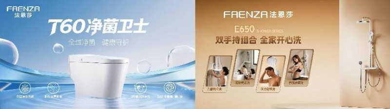2025 年,法恩莎攜手德國 Kurz Kurz Design(庫爾茲庫爾茲設計)開啟中德設計美學前瞻對話,以藝術先鋒姿態探索全球美學新境。同年 8 月 18 日,品牌以 “新「適」力・浴非凡” 為主題舉辦新品發布會,錨定 “舒適、適配、適宜” 核心維度,精準呼應當代消費者對高品質、智能化衛浴生活的深層期待,其中重磅推出全能潔凈型智能座便器——T60凈菌衛士,秉持 “潔凈健康為最大的舒適” 理念,創新全鏈路動態自潔抗菌科技:依托抗菌座圈、UV動態水路除菌、UVC紫外線殺菌、電解水噴淋等系統性自清潔技術,為用戶打造“全域凈菌,健康守護”的舒適體驗;同步亮相的 E650 雙手持花灑,以五功能出水適配全家多元需求——小手持便捷兒童與寵物洗護,大手持、頂噴、背噴等滿足成人澎湃沐浴與舒壓按摩,構筑共享式愉悅沐浴解決方案。