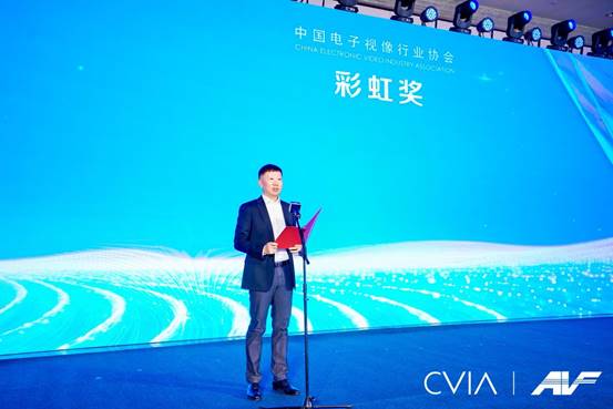 大會現場,中國電子視像行業協會執行會長郝亞斌和秘書長董敏分別宣布了獲得年度人物“彩虹獎”和年度創新成果“科技創新獎”的名單。