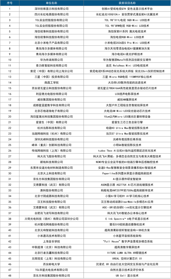 《2025年度顯示技術及終端視覺健康應用實踐》典型案例名單