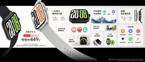 此外,榮耀500系列新品發布會還帶來了多款重磅新品。榮耀500系列帶來超級標準版和超級Pro版,以2億人像全能實況、驍龍8系旗艦芯片、8000mAh青海湖大電池超長續航、超美水晶小直屏最強質感,重塑檔位標準,為用戶帶來一步到位的用機體驗。榮耀手表X5作為榮耀手表迄今最大屏、最窄黑邊、最輕薄的方表,是檔位中唯一同時配備游泳級防水、獨立GPS的智能手表;榮耀Earbuds S具備深度降噪、空間音頻,擁有超長續航;榮耀親選螢蜂Al投影儀Air獲得京東亮度認證,投影表現更亮更清晰,搭載創新AI 智能操控,帶來全新操控交互體驗,點得準,更玩得爽!